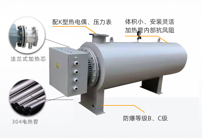 產品概述:空氣加熱器主要對氣體流進行加熱的電加熱設備。空氣加熱器的發熱元件為不銹鋼電加熱管,加熱器內腔設有多個折流板(導流板),引導氣體流向,延長氣體在內腔的滯留時間,從而使氣體充分加熱,使氣體加熱均勻,提高熱交換效率。空氣加熱器的加熱元件不銹加熱管,是在無縫鋼…